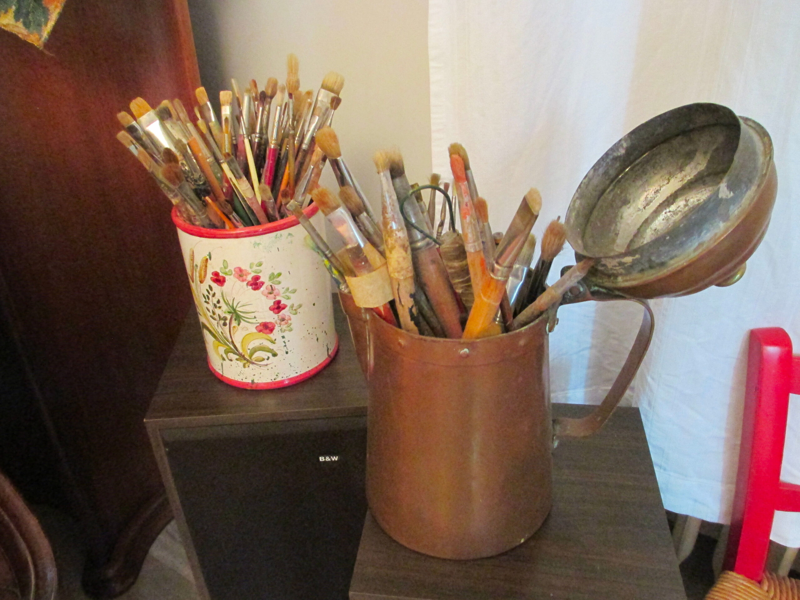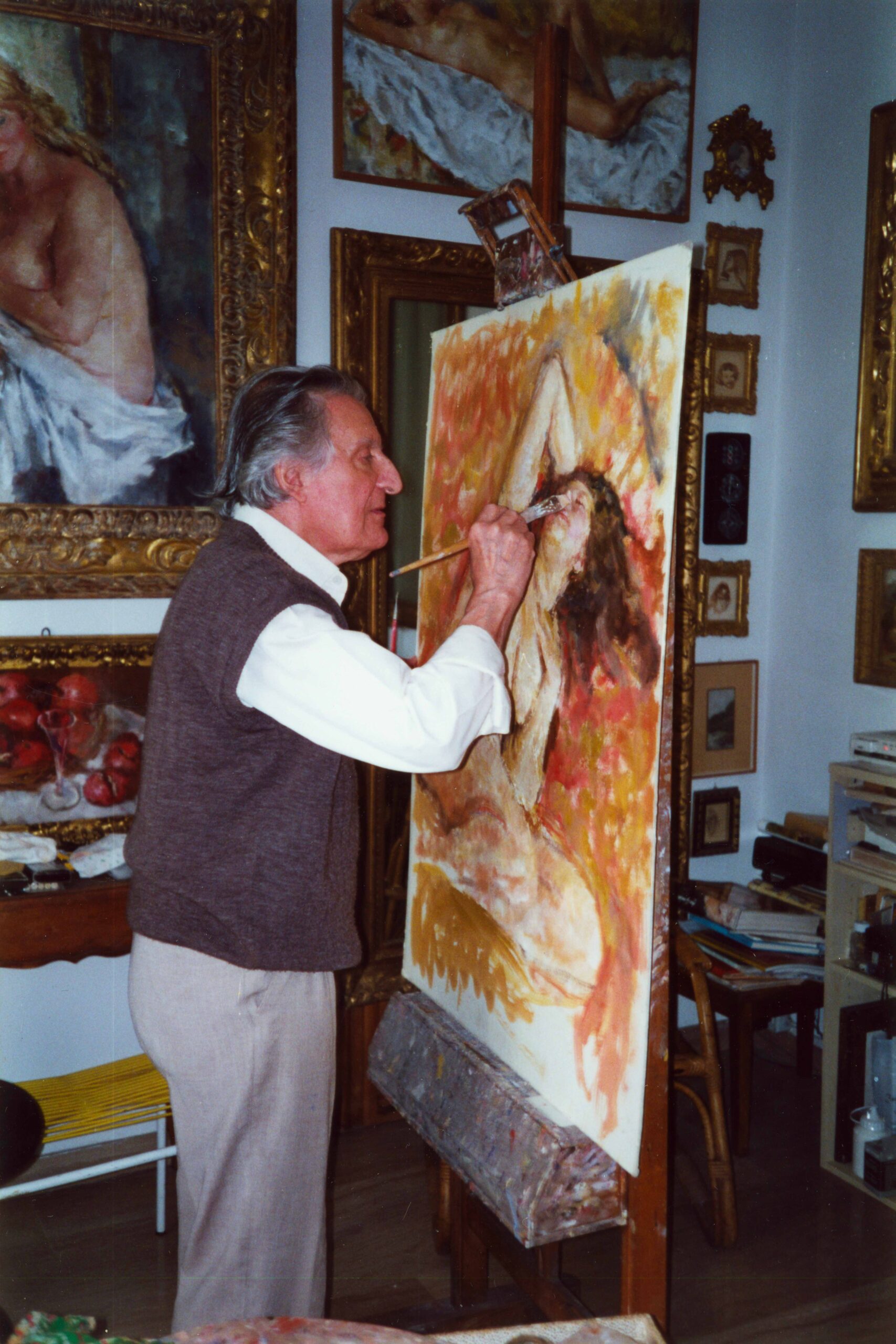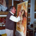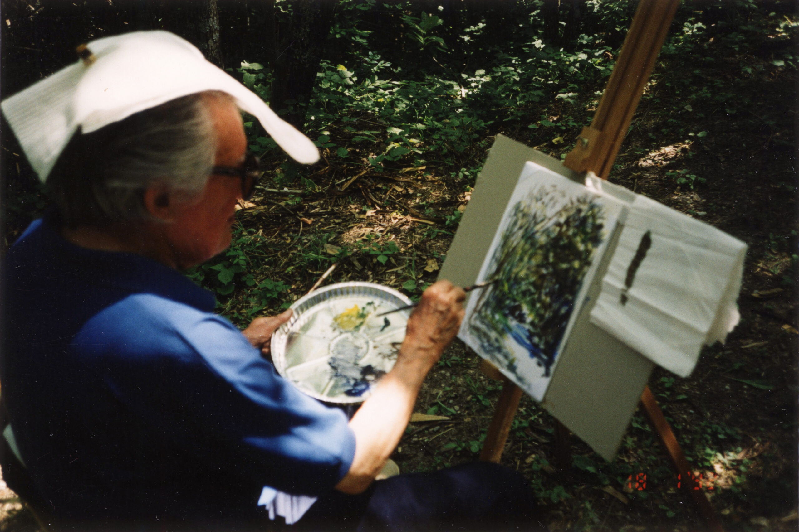 Luglio 2003 – Il pittore mentre esegue un acquerello, come sempre dal vero, nel bosco tra Vidiciatico e Lizzano in Belvedere