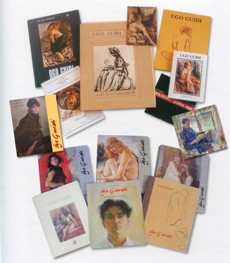 2003 – Gianarturo Borsari, promotore di meravigliose mostre con la sua Associazione Bologna per le Arti, e sostenitore della pittura bolognese, organizzò con Guidi la prima mostra di un artista ancora vivente. L’antologica si tenne da fine 2003 ad inizio 2004 nella centrale via Castiglione, a Palazzo Ratta, con pubblicazione del catalogo curato da Franco Basile e nell’occasione della mostra Ugo Guidi presentò la sua seconda ricca monografia edita dalla Re Enzo Editrice nel giugno 2003.