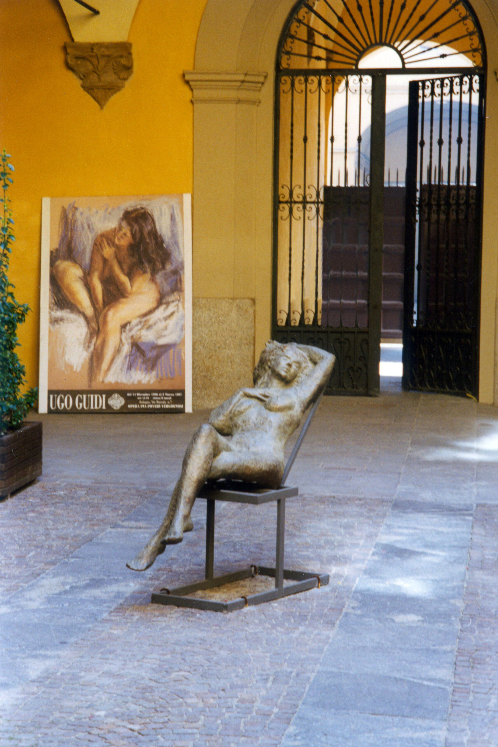 Dal novembre 1995 al febbraio 1996 Guidi fu presente in Corte Isolani con una mostra di opere di vario genere, selezionate pur in un numero limitato, ma completate da sculture bellissime che spesso raffiguravano le sue modelle con testine al vero, in terracotta patinata ed in bronzo, e nudi femminili in posture eleganti e fascinose tali da ricordare anche le sue pitture ad olio e pastello; tra queste spiccava la grande “nudo al sole” terracotta al vero di 160 cm. Questa mostra serviva a Guidi per presentare la sua prima Monografia, un volume di oltre 250 pagine edito da Edizioni Renografica  curata dallo stesso artista che comprendeva suoi lavori di cinquant’anni di attività. Alla fine dello stesso anno sino ad inizio del 1997 Guidi proseguì le sue mostre a Bologna con l’esposizione delle opere in via Marsala presso la sede dell’Opera Pia dei Poveri Vergognosi; in quella occasione il Professore riscosse tanto consenso da visitatori anche venuti da fuori città ed in particolare ricevette la visita della dottoressa Marilena Pasquali – tra le massime studiose e conoscitrici dell’opera di Morandi – con un Monsignore che fu segretario del Cardinale Giacomo Lercaro, da qui la decisione di donare due quadri alla Fondazione Lercaro, opere ad olio con fiori e natura morta. Si racconta l’aneddoto per cui il Monsignore, ammirato dai bellissimi nudi femminili chiusi in originali cornici d’epoca, avrebbe espresso la disponibilità ad accogliere alla Fondazione Lercaro anche una “bella donnina” se l’artista si fosse sentito meglio rappresentato da quel tipo di opera.